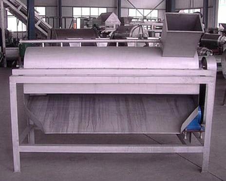 橄欖去殼機適用于經過鹽水煮后的橄欖的去核。水果通過轉子上不同角度的分離板 ,將水果的核肉分離,得到塊狀果肉,從篩網孔中落入出料斗,核由數個分離板組成的螺旋,向出渣處排出。