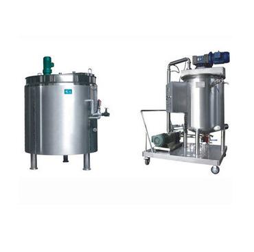 本設備由儲液容器、人孔裝置、溫度計、液位計、攪拌裝置等組成。設備內膽全部采用 304 不銹鋼 2B 板制成,內外表面拋光處理;采用氬弧焊接,內壁光滑,無凹凸不平或死角;外夾套為不銹鋼米諾板,和內膽焊合組成蒸汽室。設備蒸汽進出口處配有截止閥、安全閥、疏水器等。設備制作完畢后,采用 0.3MPa 的水壓試驗。下封頭采用 150 °錐形封頭,外形美觀,出料方便,并且設備可與 CIP 自動清洗裝置配用,便于自動清洗,符合食品衛生要求。